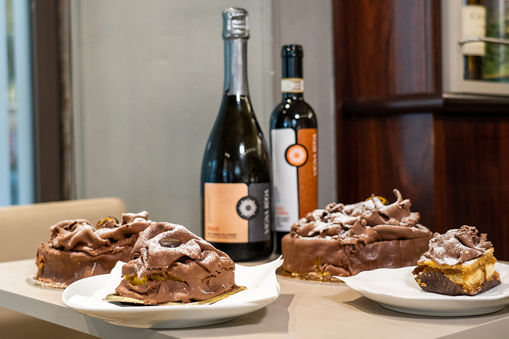 Stendere uno strato di crema zabaione e coprire con un disco di morbido pan di Spagna, quest’ultimo va imbevuto con una bagna al rum.